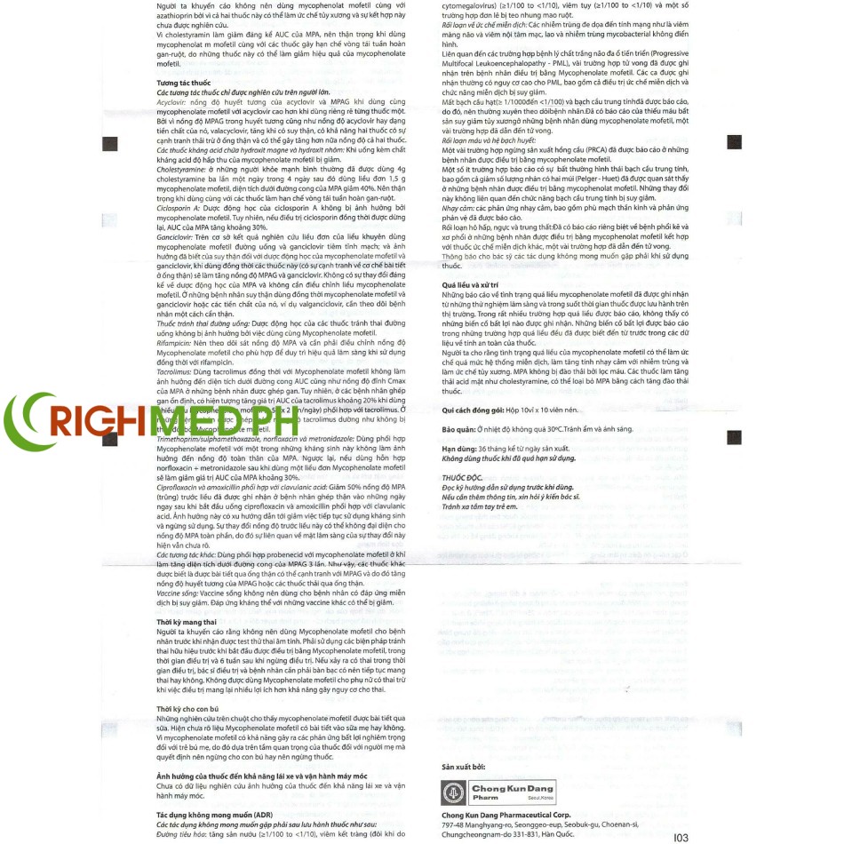 Mỗi viên chứa Mycophenolat mofetil 500mg.
