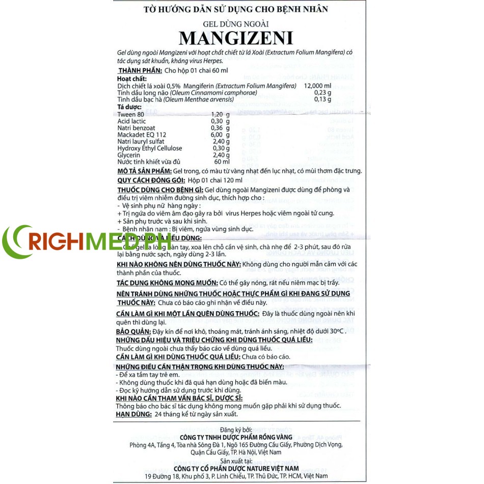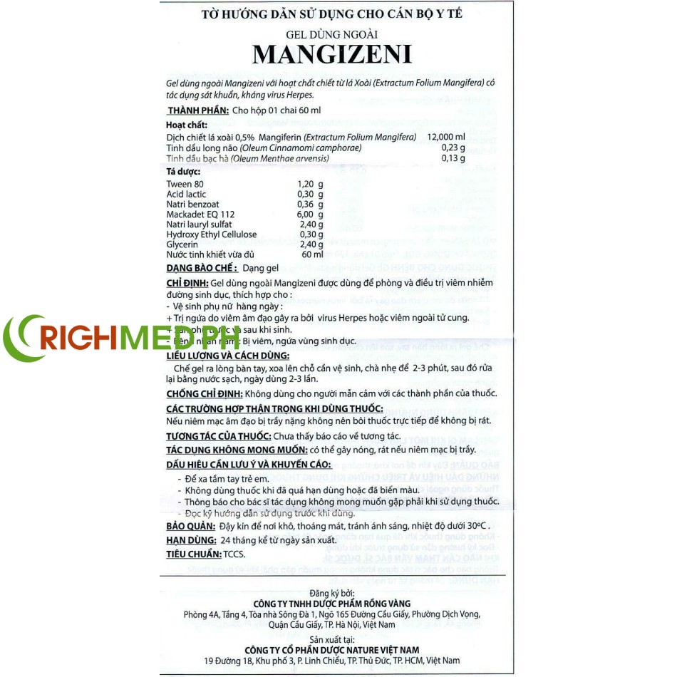 Gel dùng ngoài Mangizeni được dùng để phòng và điều trị viêm nhiễm đường sinh dục, thích hợp cho :